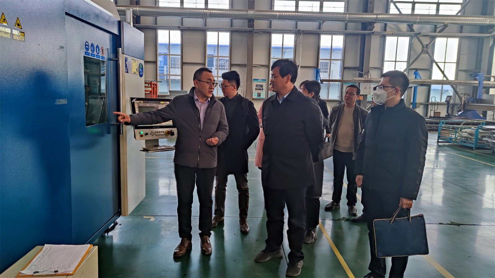 尹處長一行來到工廠廠房,參觀了生產(chǎn)現(xiàn)場,詳細(xì)詢問了項目投產(chǎn)情況。高總經(jīng)理向尹處長匯報了聚力特工業(yè)設(shè)備智能制造產(chǎn)業(yè)化項目的建設(shè)進(jìn)程、生產(chǎn)能力和發(fā)展前景,并對各級政府在疫情期間全力保障企業(yè)的生產(chǎn)生活表示了衷心的感謝。